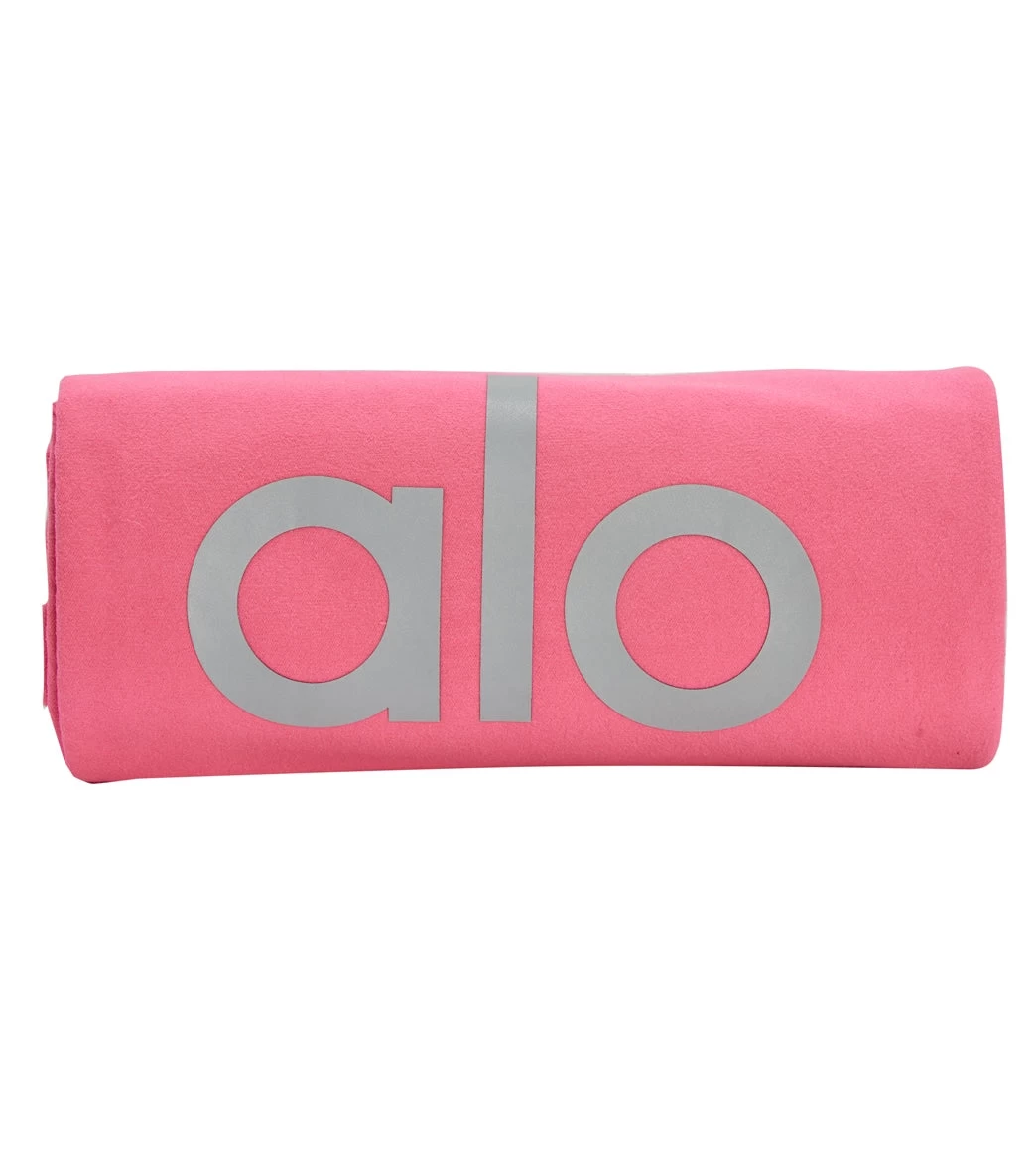 The Alo Yoga Grounded No-Slip Mat Towel features a soft front that absorbs sweat for maximum comfort and stability, plus a silicone-grip pattern backing sticks to your mat for a slip-free practice.