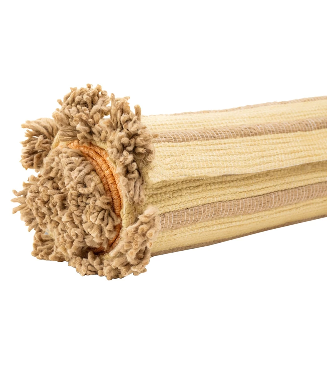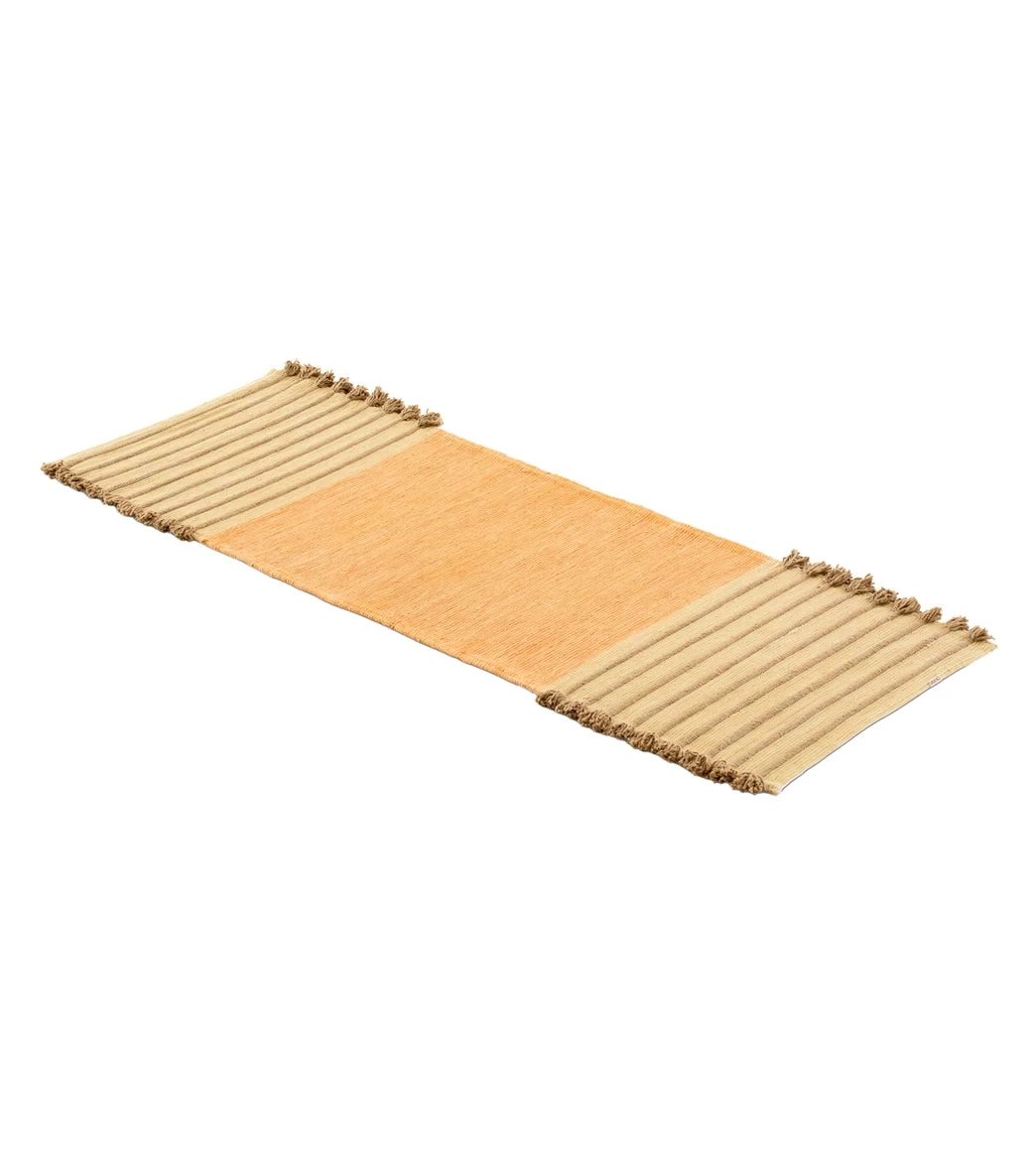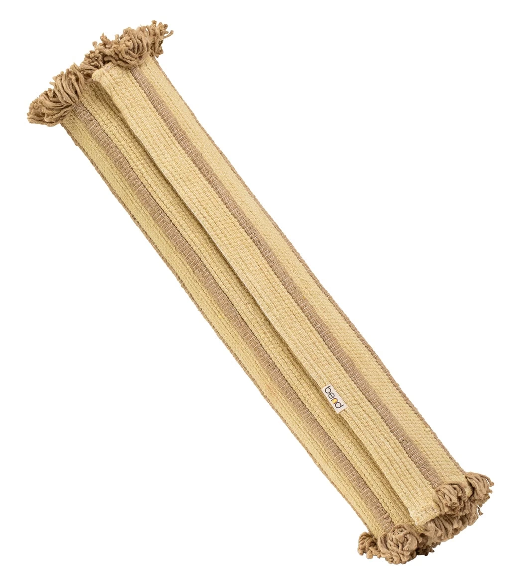 This Bennd Annatto Harda Ayurvedic Yoga Mat is made of 100% ethically sourced raw cotton, medicinally dyed, and infused with Bennd’s exclusive formula consisting of 22 different Ayurvedic medicines. These yoga mats are hand-loomed and brushed with natural rubber latex on the underside of the mat for outstanding floor grip.