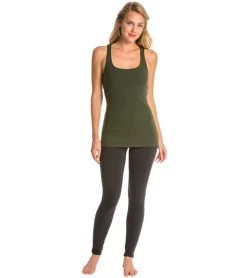 An update to Beyond Yoga’s racer back cami, this Yoga Cut-Out Cami adds style to a popular style. The extra-long length ensures coverage whether you’re in the downward dog or warrior pose .
