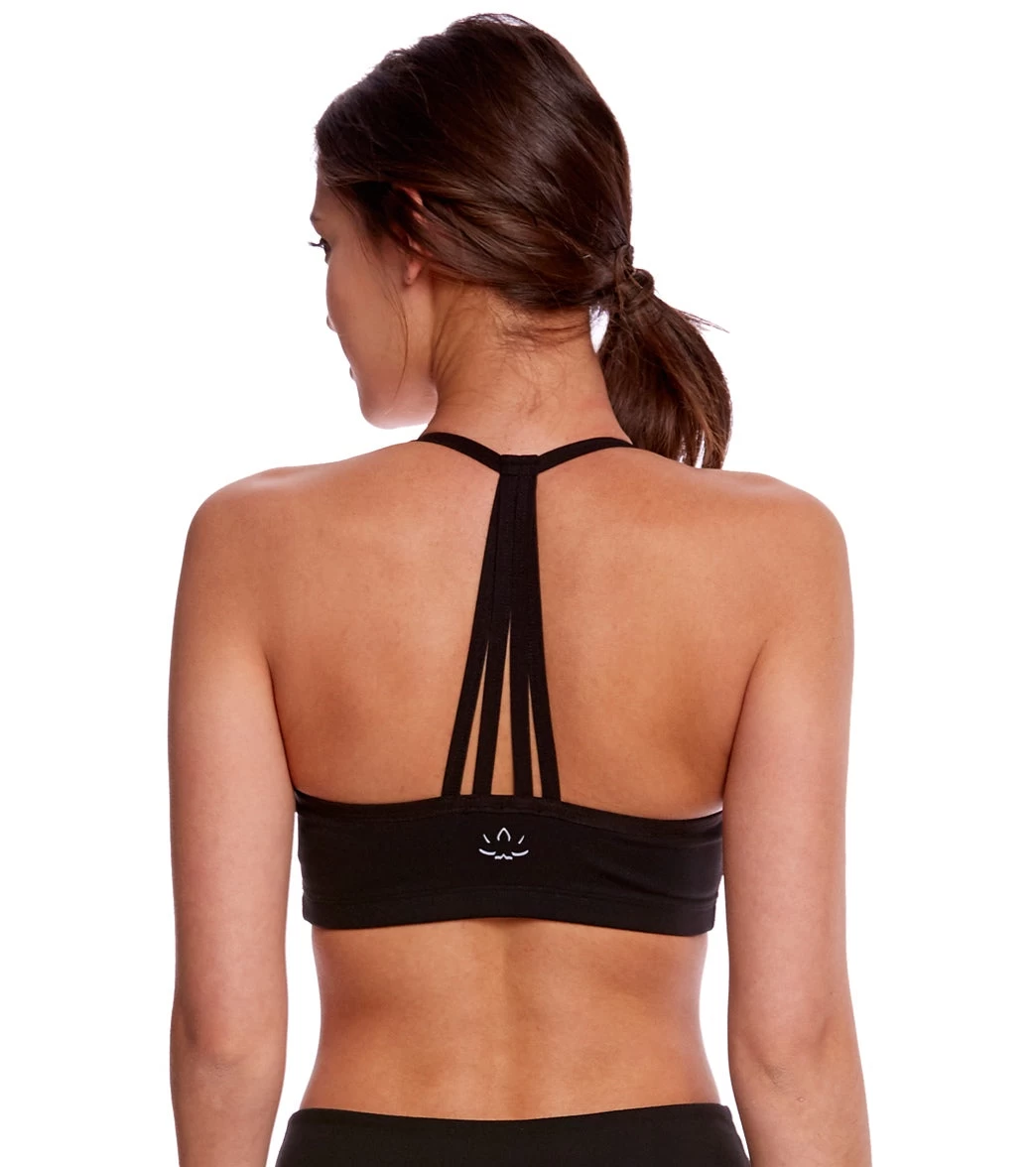 Pull-on comfortable support with this Converging Straps Yoga Sports Bra. A strappy back design gives this second-skin bra a stylish update.