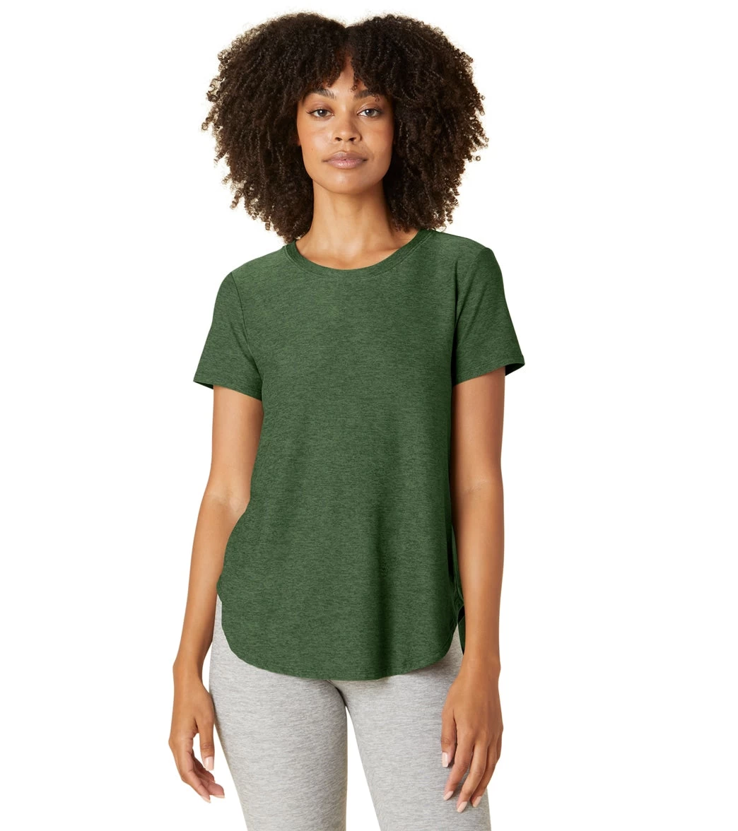 Layer up and wind down in the Beyond Yoga Featherweight Spacedye On the Down Low Yoga Tee.
