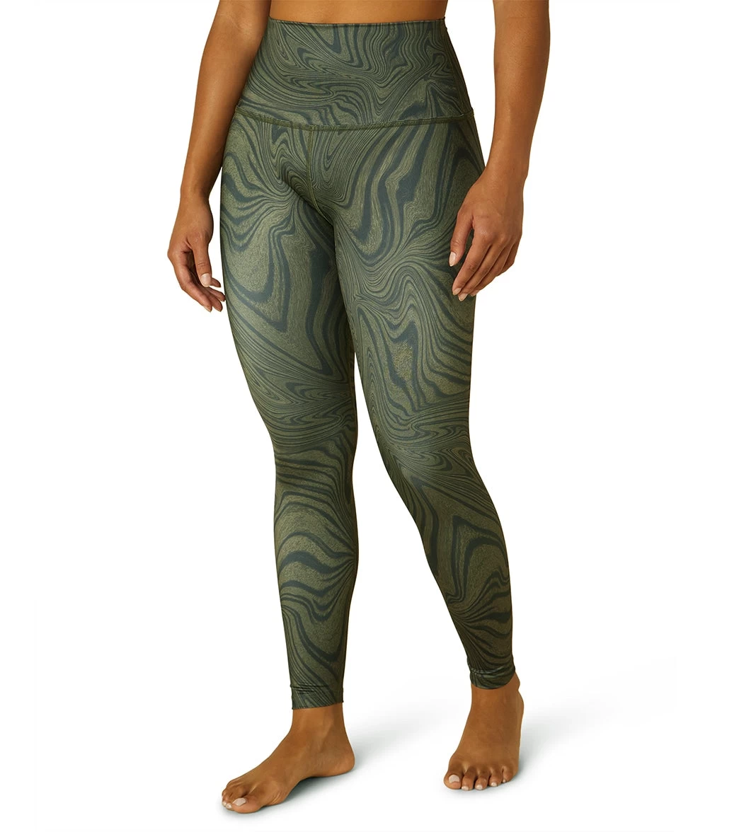 Made from recycled plastic bottles, the Beyond Yoga Printed High Waisted Midi Leggings are a stylish, sustainable option for supporting your practice and the planet.