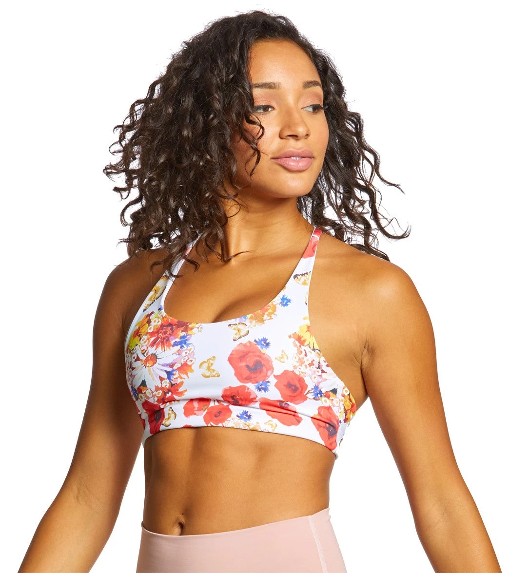 Stay supported throughout class in this DYI Criss Cross Yoga Sports Bra. Made from high compression fabric, this sports bra features thin cross back straps and a floral print thta will upgrade any outfit.