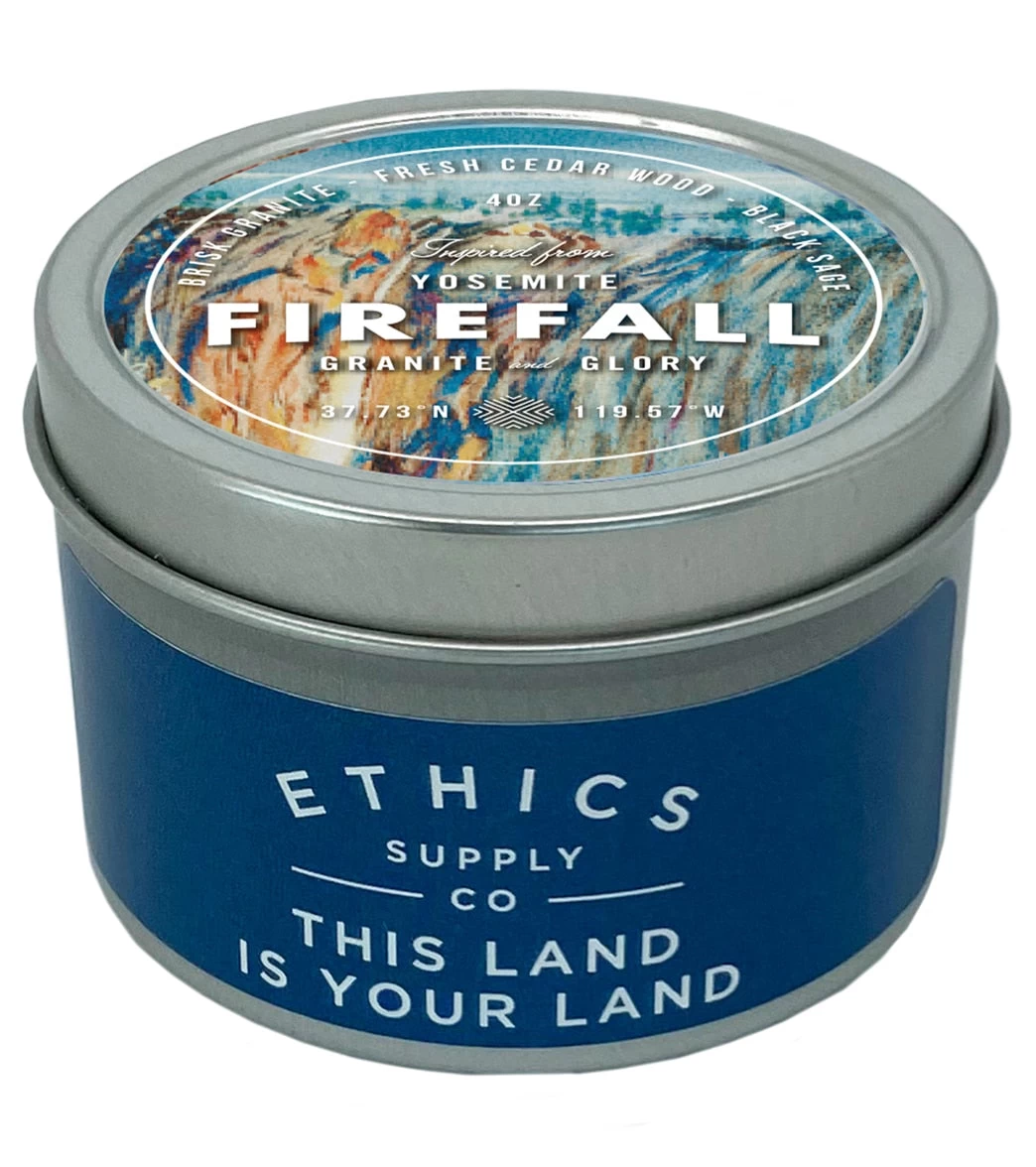 Inspired by Yosemite, the Ethics Supply Co. Firefall is a richly scented candle that offers thrilling notes of fresh cedarwood, embellished with brisk granite and sumptuous black sage.