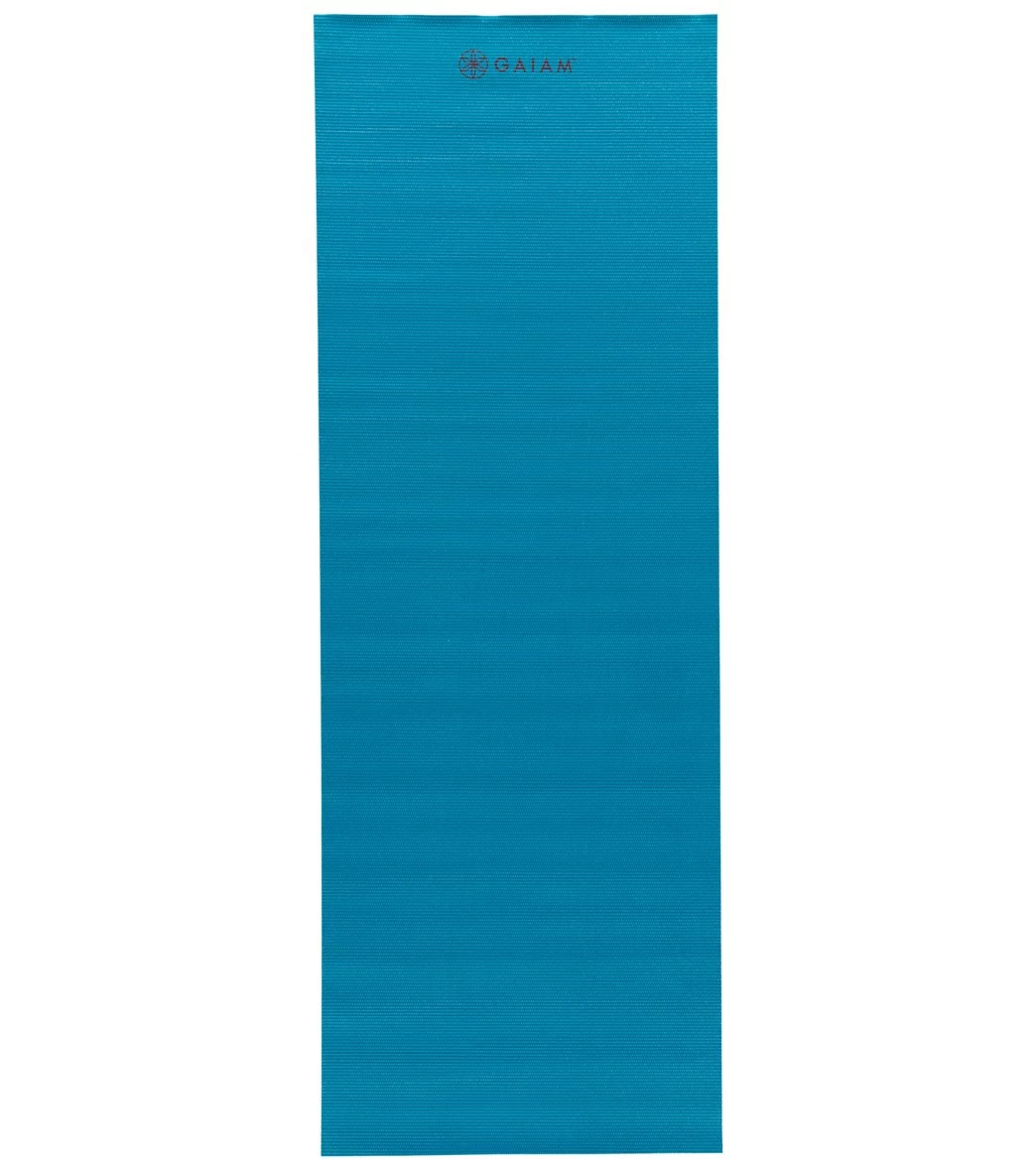 - Care: Spot clean with Gaiam’s® Yoga Mat wash or a damp cloth with water and mild detergent; dry flat.