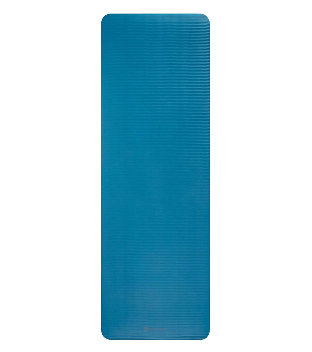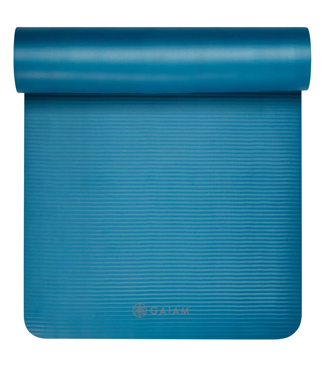 The Gaiam Fitness Mat, 10mm is super-thick and designed to offer supreme cushioning for all types of floor work. It features ridges for superior grip and ten millimeters of foam to support and protect your bones and joints as you stretch, perform strength training exercises, or any other type of floor work. It’s available in a variety of classic colors and comes with a bonus carry strap for easy portability.