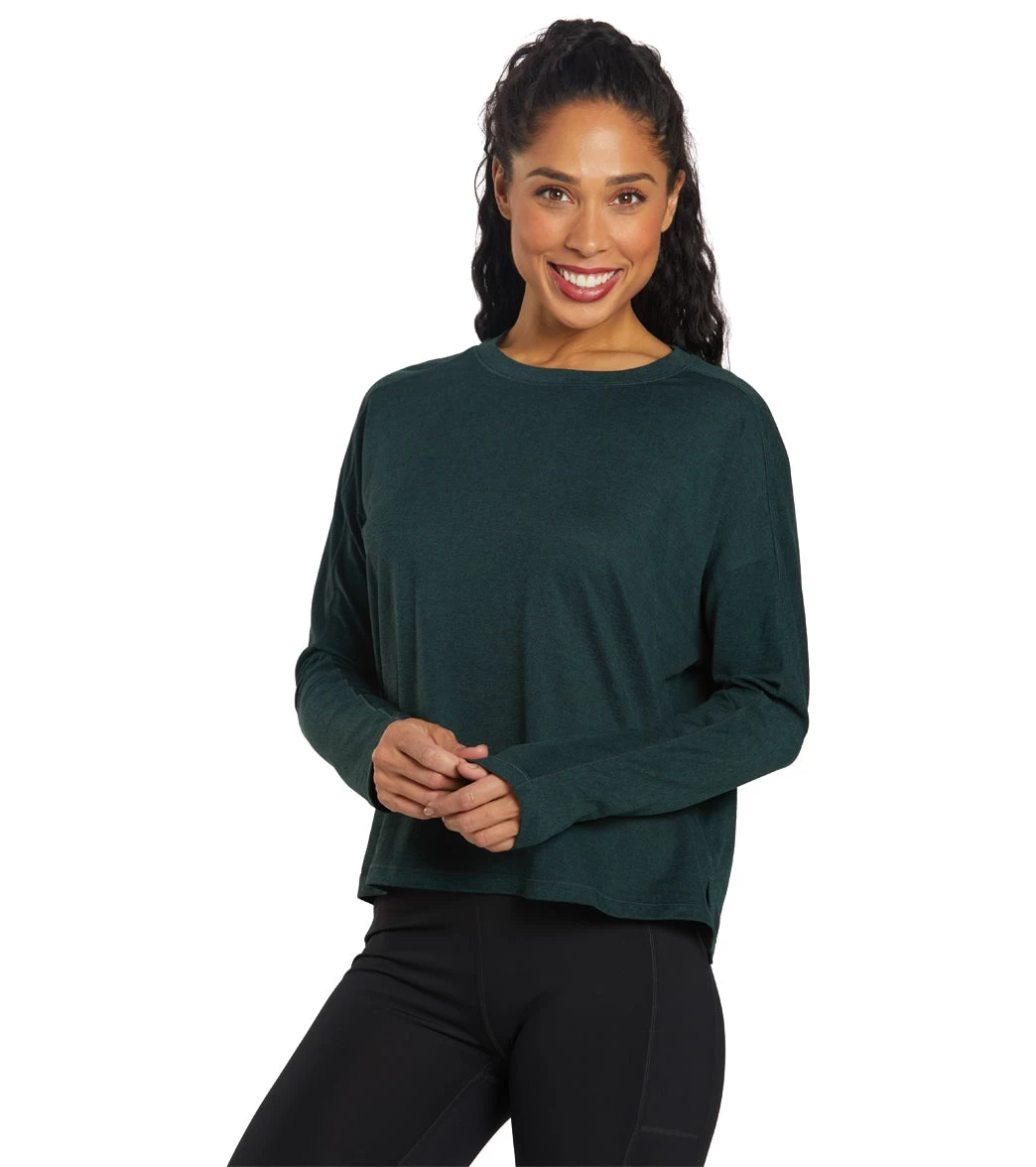 For post-work, post-workout, or just posting up on the couch, the Girlfriend Collective RESET Long Sleeve has a super soft feel and stretchy, relaxed fit. It comes in well loved colors so you can easily pair it back to your favorite workout gear and has moisture-wicking properties so you don’t have to worry about breaking a sweat during that way-too-intense warmup flow.