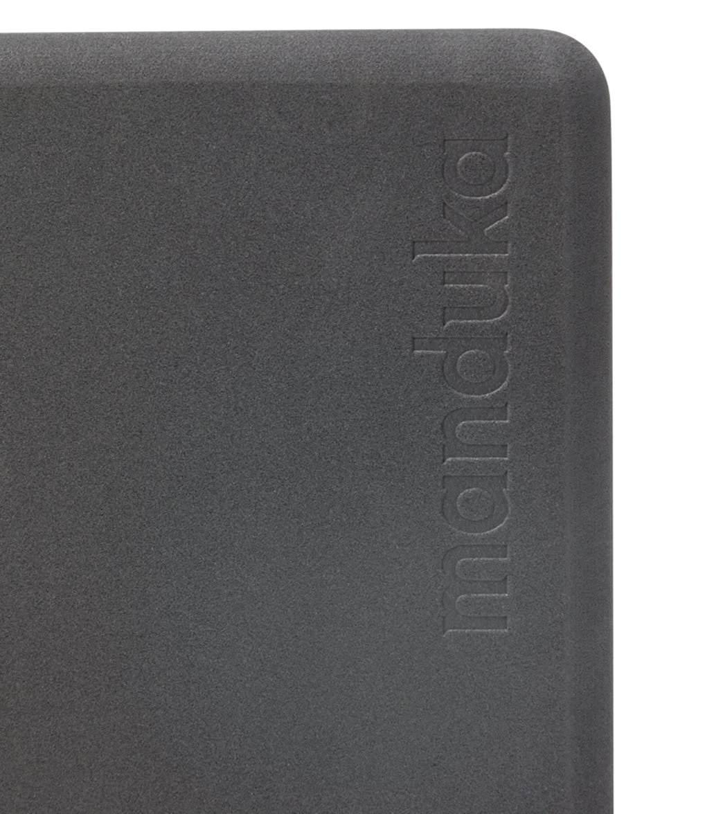 Manduka’s Recycled Foam Yoga Mini Block is the first among equals – consisting of over 50% recycled EVA foam, this lightweight yet firm yoga block provides unbeatable comfort, style and support. The Mini Block, with less than half a pound and these dimensions 4″ x 4.5″ x 5.75″, is a smaller, more portable version of our standard Foam Block. Great for yogis on the go or for those who want blocks at home but don’t have space for the full-sized version. Although smaller in size, the Mini Block has the same comfort, style and support as the larger version. From balancing postures, to stretching, to supported back bends, a block can allow you to reach further, go a little deeper into your postures, and support you throughout your practice.