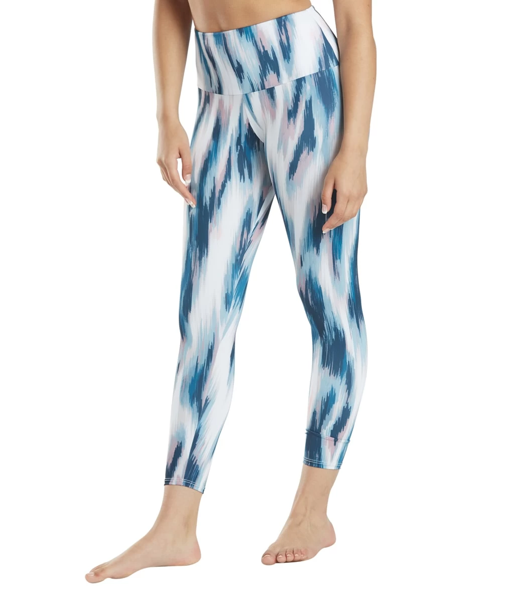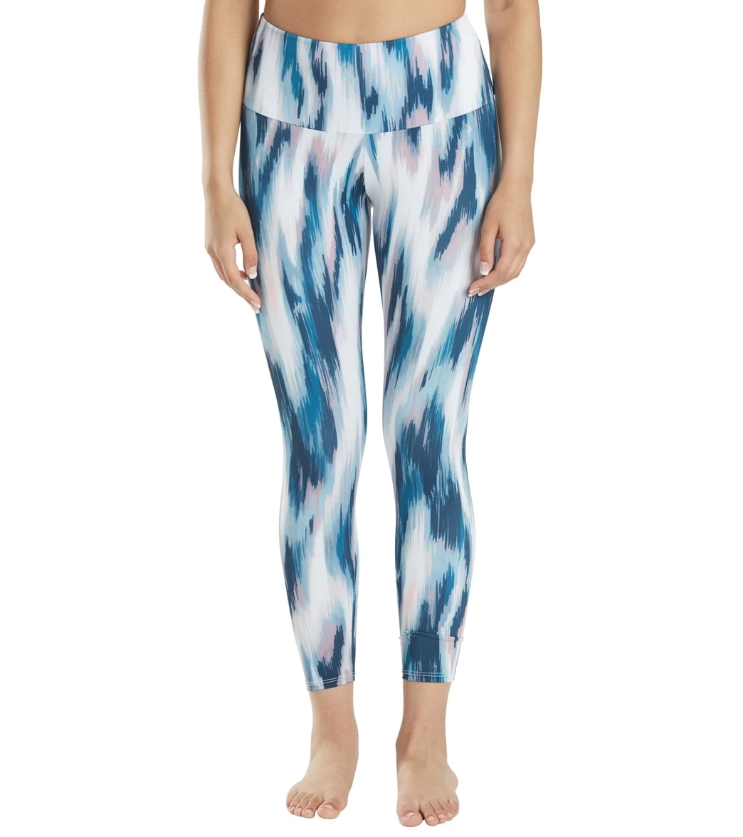 Onzie High Waisted Basic 7/8 Yoga Leggings Indigo Ikat