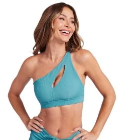 For statement-making activewear, look no further than the Onzie Sutra Bra, a chic colorblock option with an asymmetric silhouette and peek-a-boo slits.