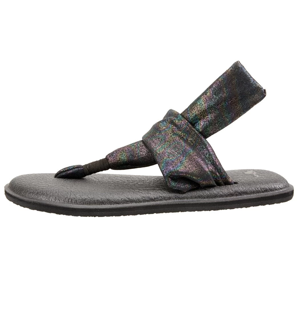 Walk in comfort with the Sanuk Women’s Yoga Sling 2 Metallic Sandal. The two-way stretch sling straps and the yoga mat footbed ensure all-day, exceptional cushioning.