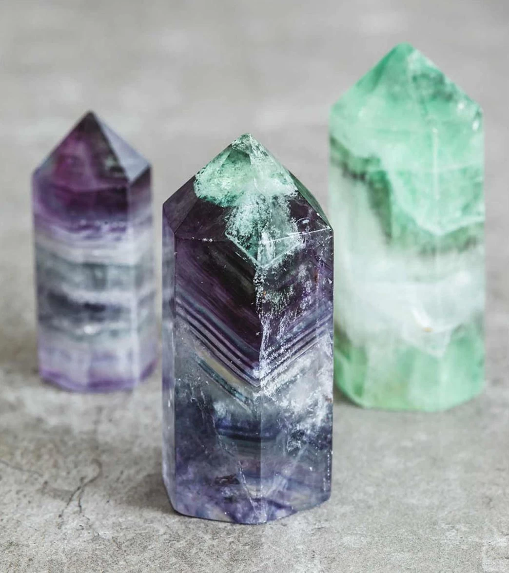 - Polished fluorite point.