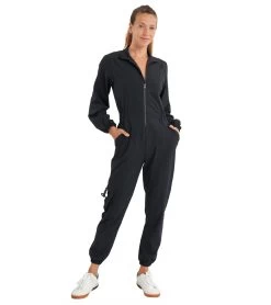 The Thrive Societe Utility Jumpsuit is a relaxed long-sleeve zip-up flight suit with elasticized waist, sleeve hem, and leg opening. Includes slash pockets and an additional cargo pocket at the wearers right with a belt and buckle closure. Designed with a lightweight and durable rip-stop fabric. A style staple that’s as reliable as it is fashionable. Perfect for outdoor recreation or everyday errands