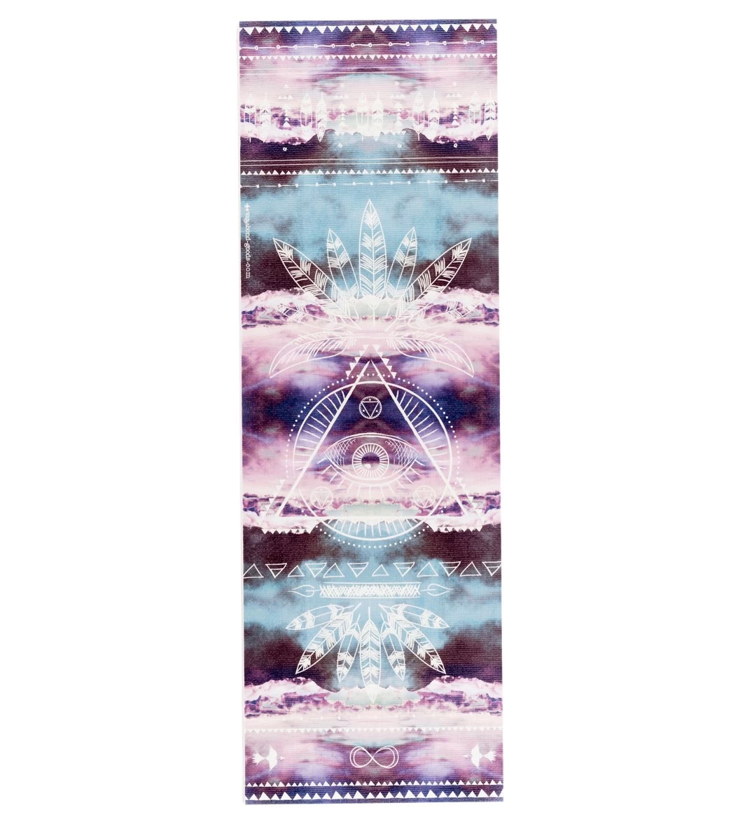 Spice up the studio with this gorgeously printed Vagabond Goods Believer Yoga Mat. This mat’s cloud background and feather and eye print is inspired by the elements.